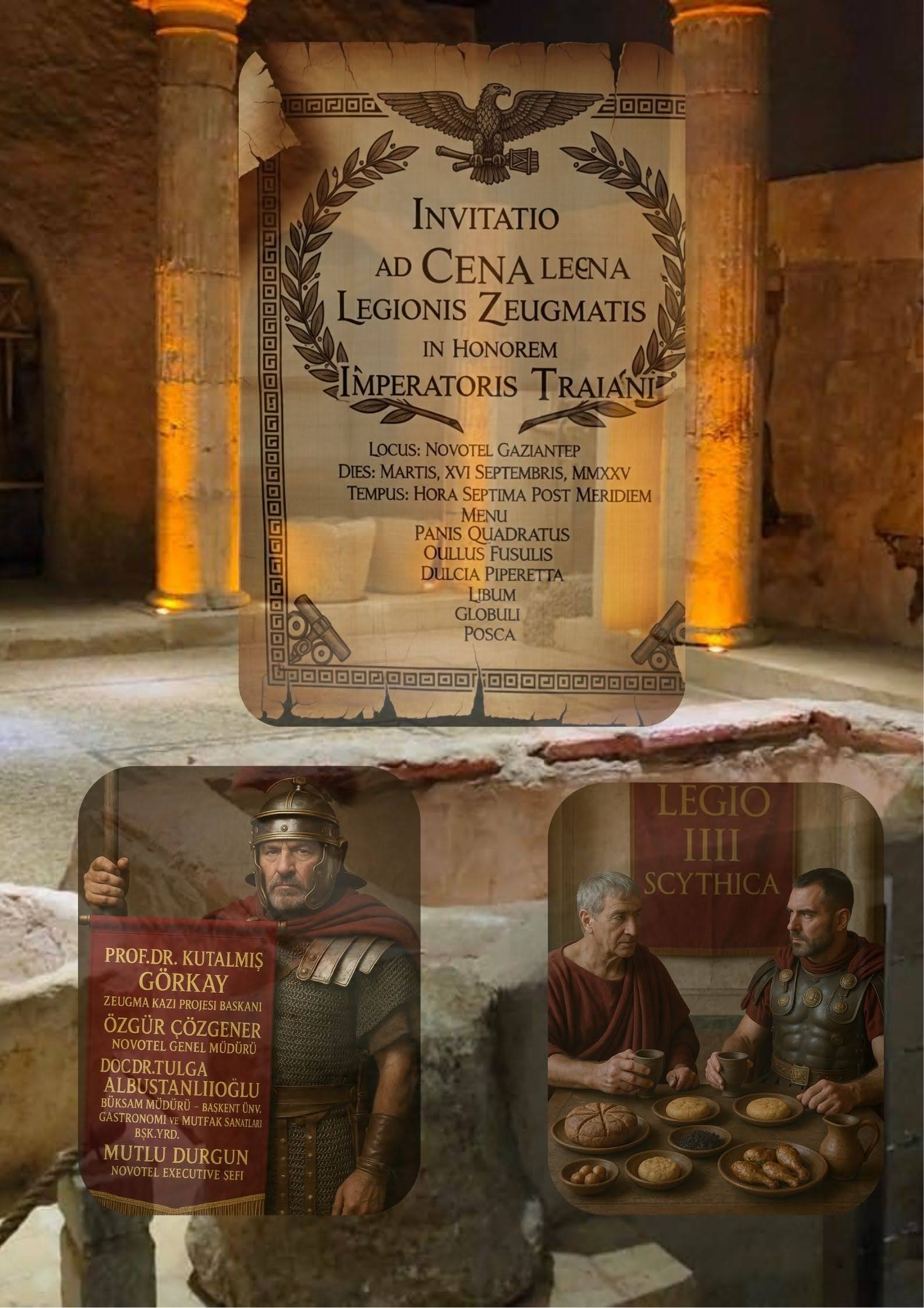 16 Eylül 2025 tarihinde Zeugma Kazı Projesi Başkanlığı ve Novetel Gaziantep İşbirliğiyle “ İmparator Traian’ın Zeugma Geçişi Onuruna Bir Lejyon Cena’sı” başlıklı antik yemek projesi gerçekleştirilmiştir. 10 Eylül 2025 tarihinde Gaziantep Şehit Kamil Belediyesi-Zeugma Kazı Projesi Başkanlığı-Novotel Gazianetep İşbirliğiyle “Doliche Antik Kenti Roma Menüsü” başlıklı antik yemek projesi gerçekleştirilmiştir.